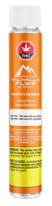 From Valhalla Flwr's recent pheno hunt comes Dante's Inferno 3x0.5g Pre Rolls. Bred in collaboration by Clearwater Genetics and Tiki Madman by crossing Oreoz and Devil Driver, this cultivar was run from seed and hand selected by our team for its loud profile, dense bud structure and incredible smoke. With an earthy, gassy, and sweet profile this newest selection from the pheno hunt is sure to wow indica consumers everywhere. Hang dried, hand trimmed and never irradiated. Whole milled flower input and hand finished for a perfect burn every time. Now available in new transparent PR tubes.
